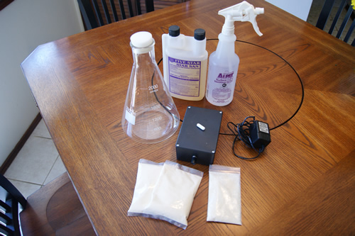 Gather your supplies including a 1000ml or 2000ml flask, foam stopper, stir plate, stir bar, DME, yeast nutrients and a sanitizer like Cleanitizer, One-Step, Star San or Iodophor.